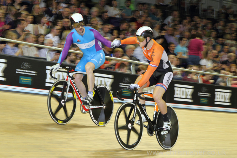 Revolution 42 | Sir Chris Hoy Velodrome – Glasgow December 3, 2013admin 1873 views Chris Skinner & Jeffrey Hoogland in the Minor Sprint final..