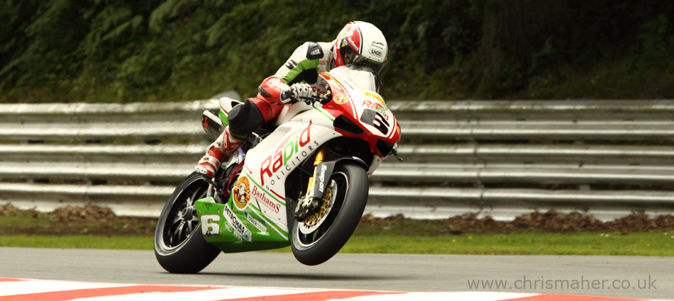 Relentless Suzuki’s Josh Brookes took his first race victory from the fourth row, whilst Rapid Solicitors Bathams Ducati’s Michael Rutter fought his way through the field with full slicks on and into second place. MSS Colchester’s Gary Mason took third, but Shane Byrne who had stopped for slicks as well managed to pass both Mason & Rutter in the final lap. EVO rider Team WFR’s Graeme Gowland finished seventh in this reduced 15 lap race only thirteen seconds off the pace.