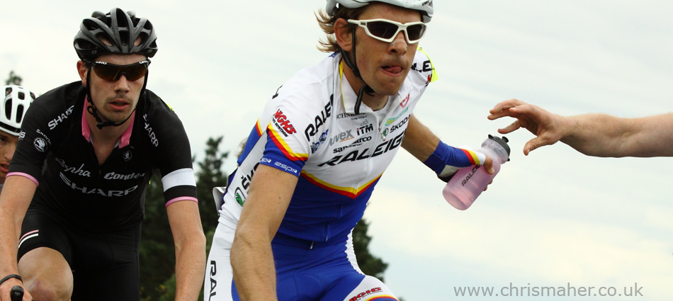 Down to two minuets by the first feed on Waithwith, Endura Racing’s Dave Clarke, Rapha Condor Sharp’s Dan Craven & Team Raleigh’s Liam Holohan headed the chase.