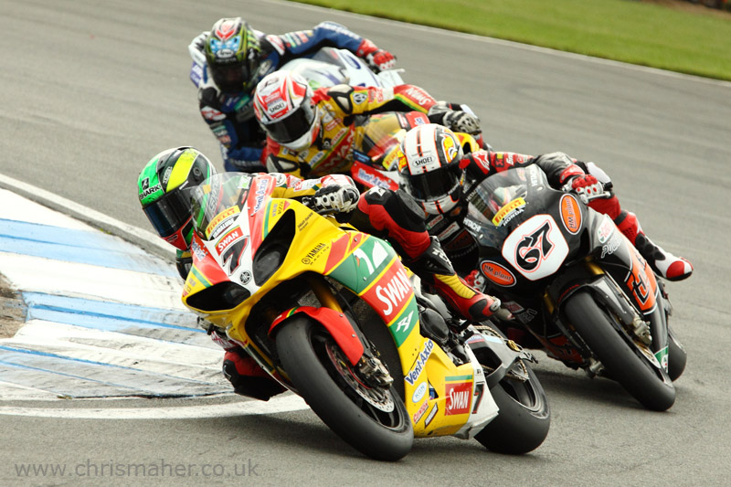 Samsung Crescent Suzuki’s John Hopkins topped Q1 whist Swan Yamaha’s Michael Laverty topped Q2. In the final selection for pole, team mate Tommy Hill qualified the quickest, his 4th pole of the season with a new Donington lap record.