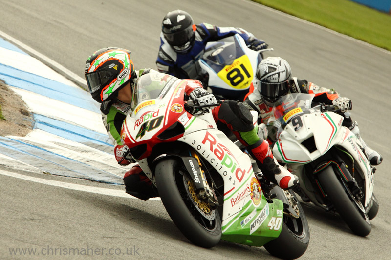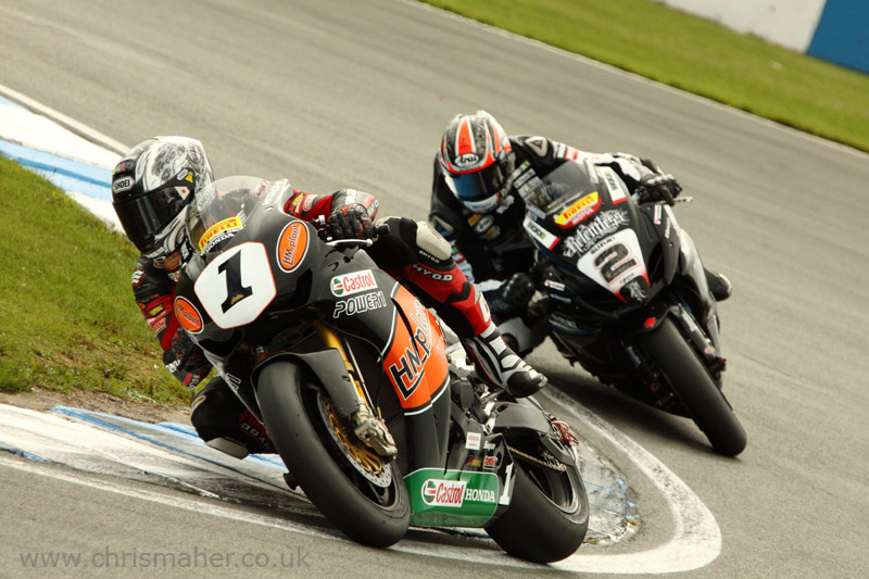 John Hopkins made his winning move on lap five to slip in front of Hill and a double victory here at Donington Park. By the end of the race, Samsung Crescent Suzuki’s John Kirham moved up to third with Rapid Solicitors Bathams Ducati’s Martin Jessopp fourth. Other title contenders Brookes came in fifth with Kiyonari eventually slipping back to sixth. HM Plant Honda’s Shane Byrne fought his way back for second last and gain valuable Showdown points in eight whilst Laverty could only manage fourteenth.