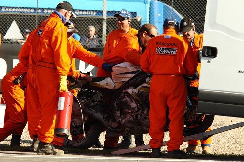 The Warm Up sessions got underway, then the day’s drama began to unfold. Second row starter, Tommy Bridewell’s Quay Garage Tyco Racing – Honda burst into flames & he was unable to start race 2.