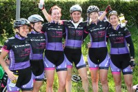 A rolling start at nine thirty, saw the whole field climb the first ascend together, but began to split with the second climb. Karla Boddy & Katie Archibald, who was riding her first road race of the season were brought back. It was Hannah Walker, Dame Sarah Story and Katie Archibald that gained some distance again, but once more, reeled in by the peloton. Walker, Storey and Archibald once again gained some distance but with four laps left, once again found themselves back in the peloton.